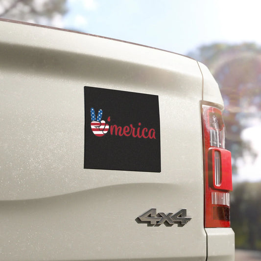 'Merica Peace Sign Car Magnet — American Flag Patriotic Vehicle Decal