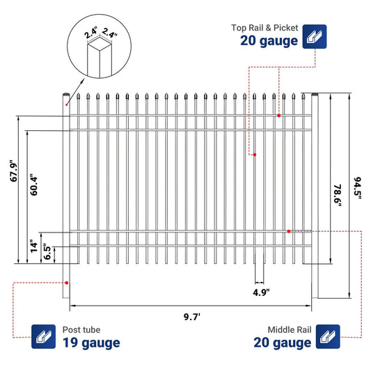 10x7 ft Steel Fence with 4 Rails, 30 Panels
