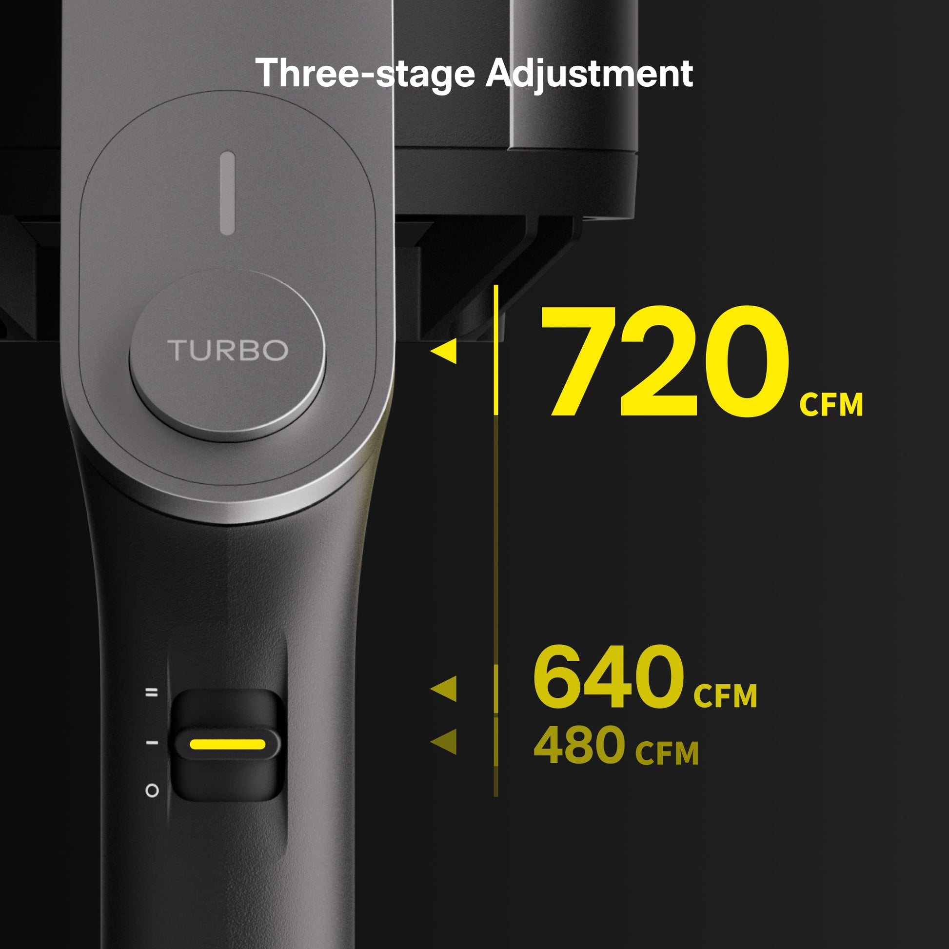 Variable Speed Dial – Offers up to 720 CFM airflow and 120 MPH airspeed, letting you adjust for different tasks with just one twist.