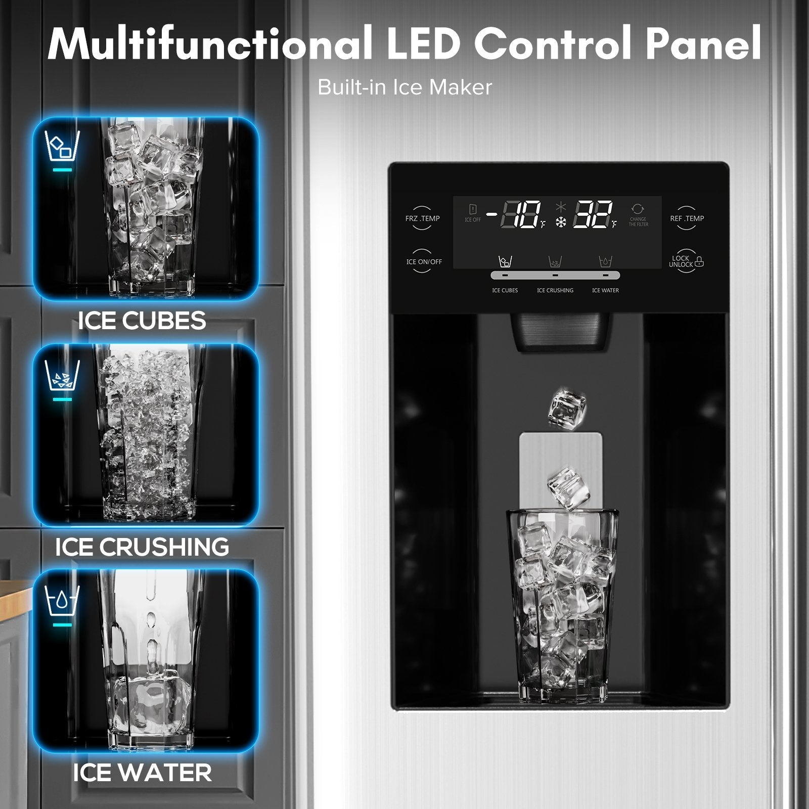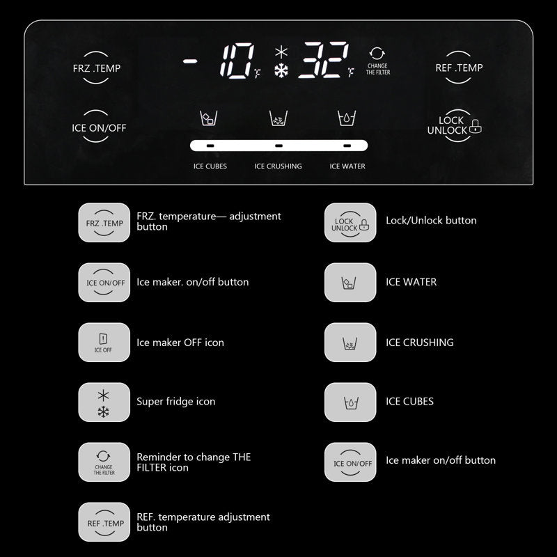 Automatic ice maker and Water Dispenser:The refrigerator has the function of automatic ice making, and users can take ice cube, crushed ice and cold water outside the door