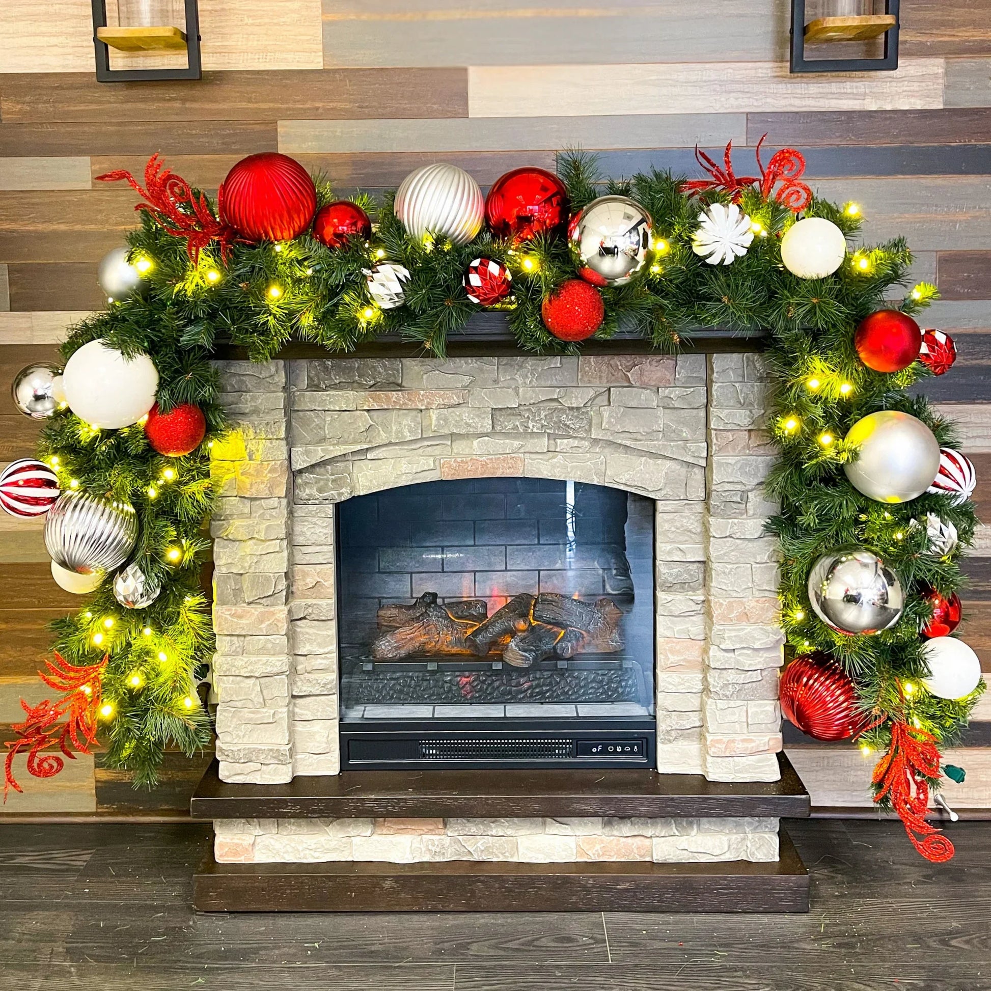 Create a magical ambiance with our Pre-decorated Garland. Its red, silver, and white ornaments are intricately arranged along the garland, and the twinkling LED lights add a mesmerizing glow. This ready-to-use garland saves you time and effort while adding a festive touch to your home decor.