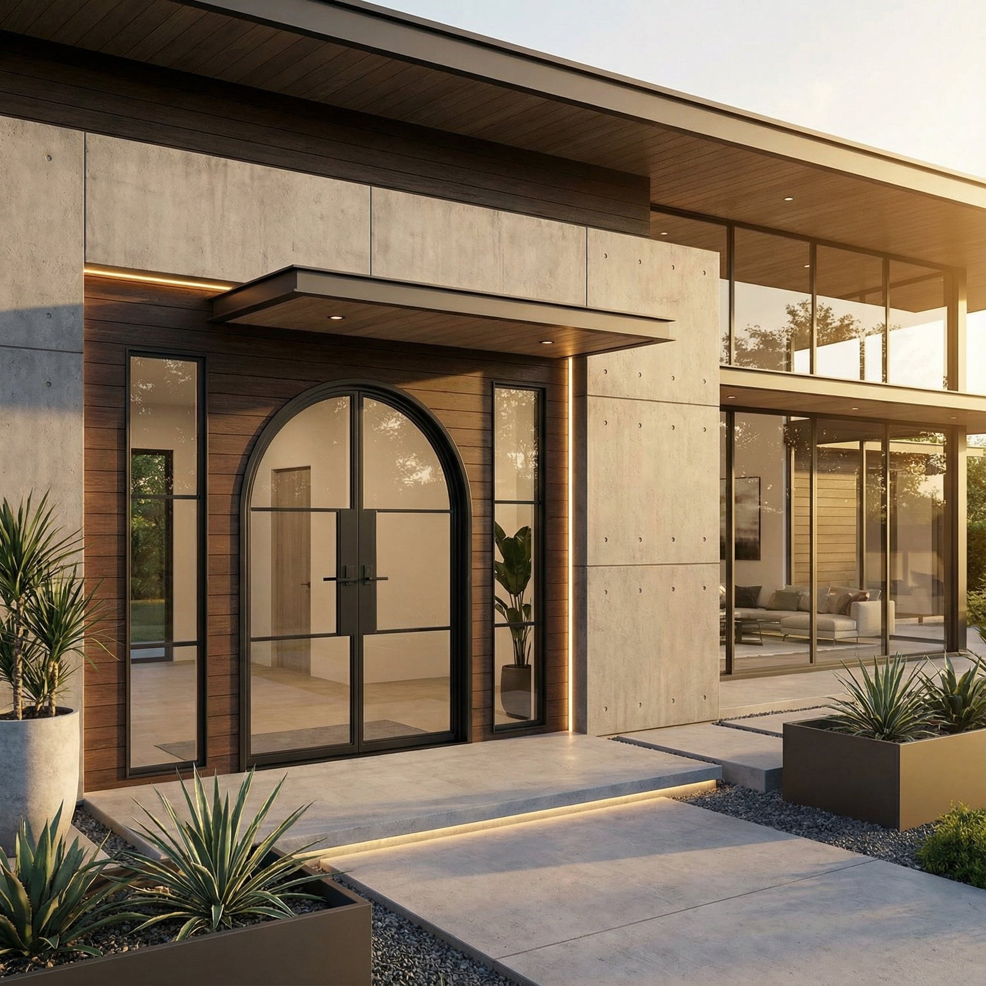 These arched French doors have 6 or 16 lights and comes in black or dark bronze