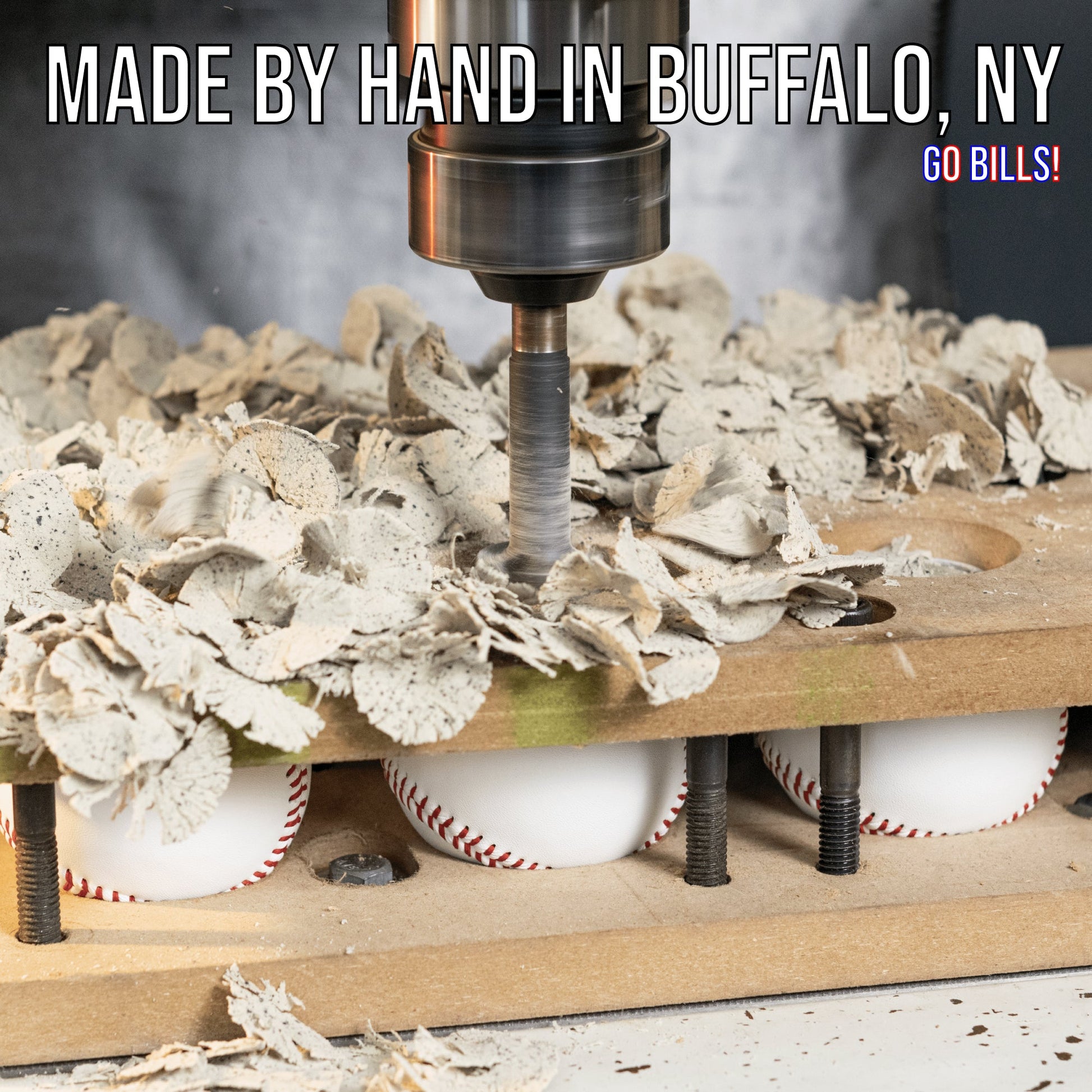 We take a real leather baseball, drill a hole into it, and insert a 1.5 ounce stainless steel tube flask. Every flask is cleaned with a bottle brush, soap, and hot water before assembly.