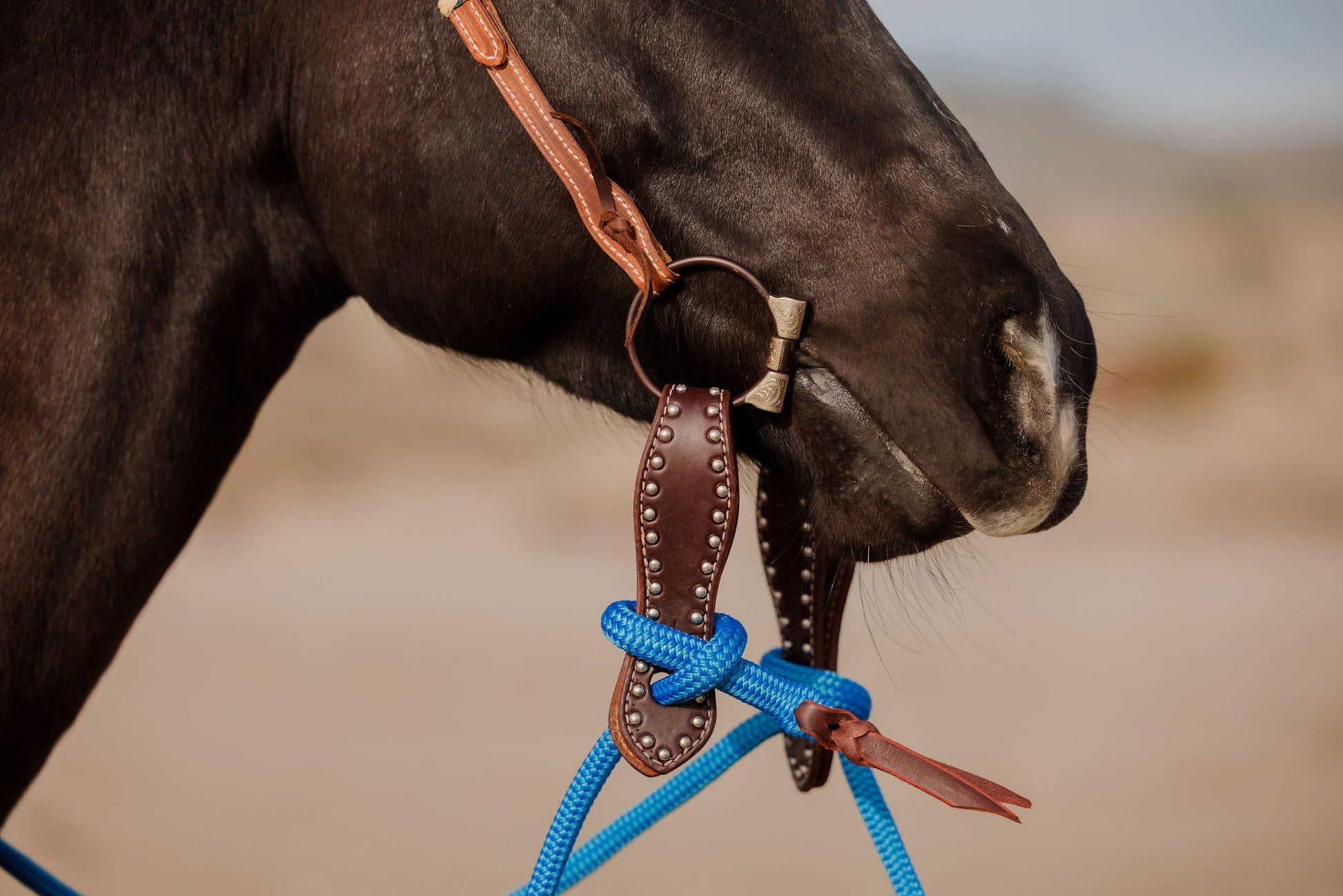 • Turquiose Striped "SLO" Rawhide Harness One Ear Headstall – Built from durable harness leather with rawhide accents for a clean, classic look.