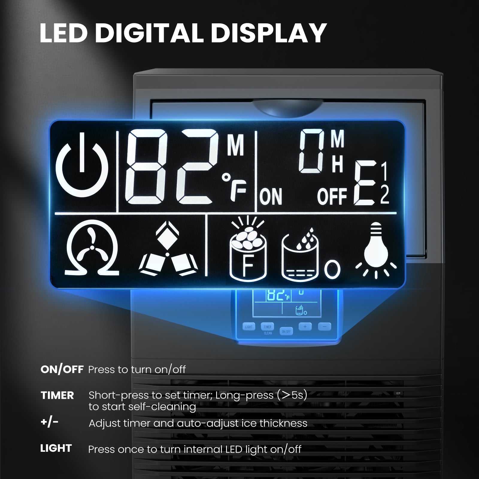 - 【LCD Panel, Easy Operation】With a user-friendly LCD, you can adjust ice-making time, cube thickness, and self-cleaning cycles. This ice maker machine simplifies daily use with precision control.