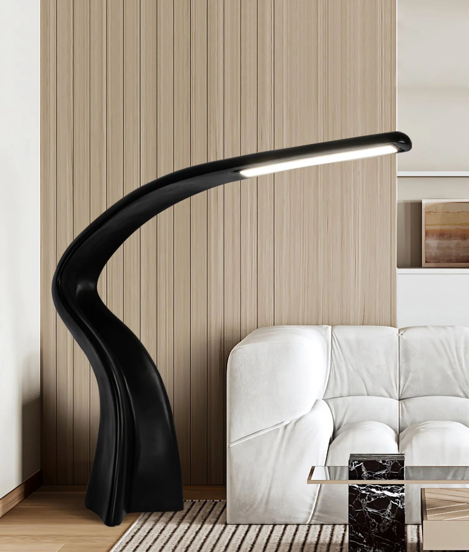 Elevate your space with the Curve Art Floor Lamp - a minimalist masterpiece that combines sleek design with functional lighting. With a sweeping black curve and slim LED strip, this lamp adds an elegant touch to any modern workspace or bedside table.