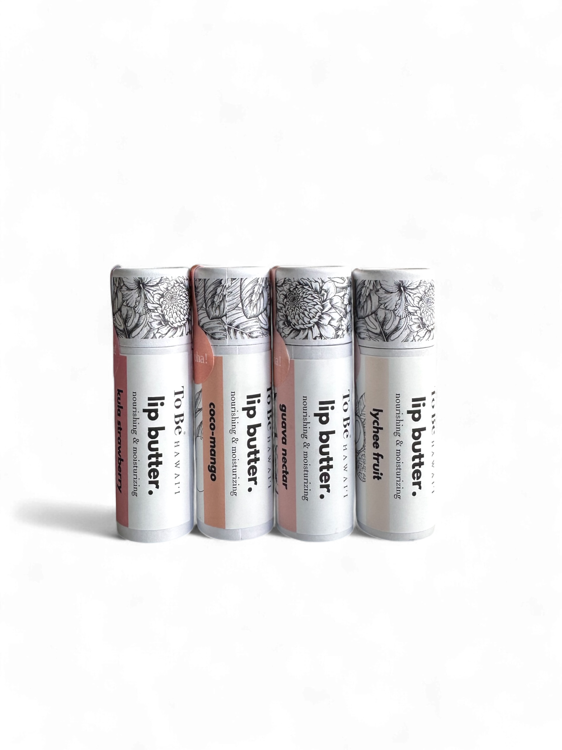 Includes 1 full size of each lip balm: Lychee Fruit,Guava Nectar, Coco-Mango, Kula Strawberry