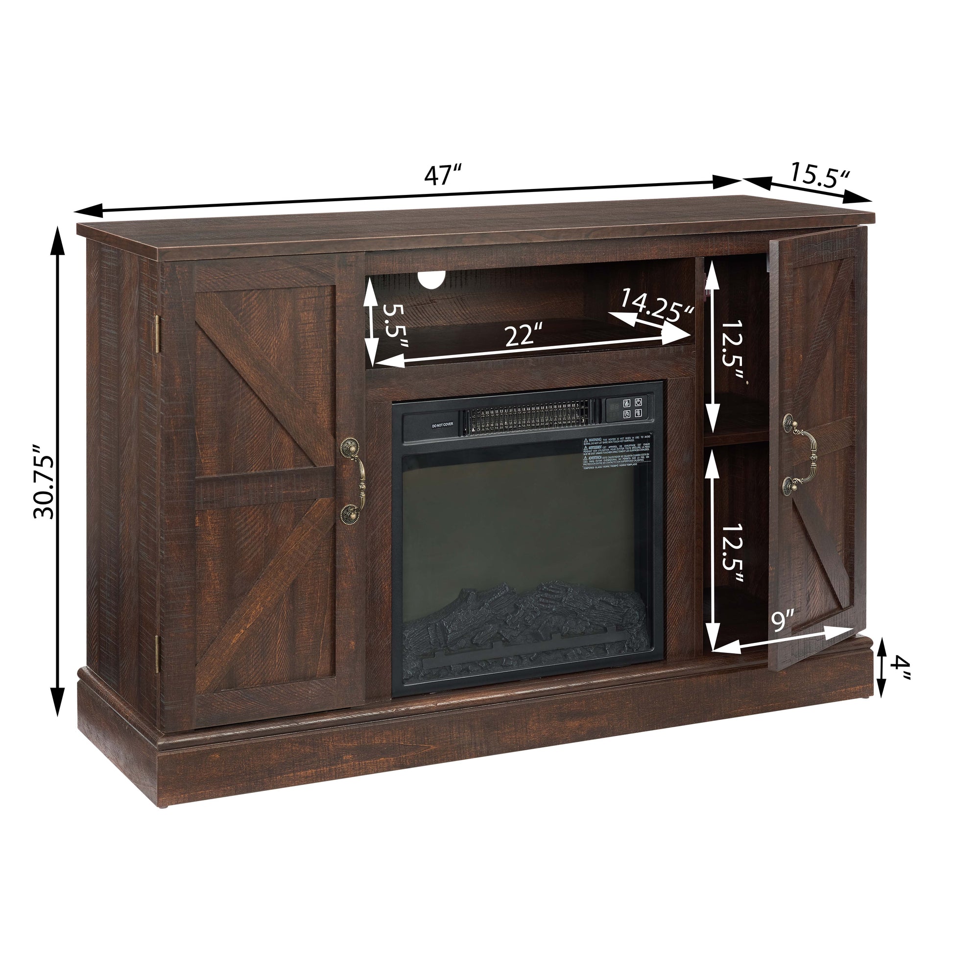 Product Name:Farmhouse Classic Media TV Stand Antique Entertainment Console for TV up to 50" with 18" Electric Fireplace Insert with Open and Closed Storage Space, Espresso 47"W*15.5"D*30.75"H