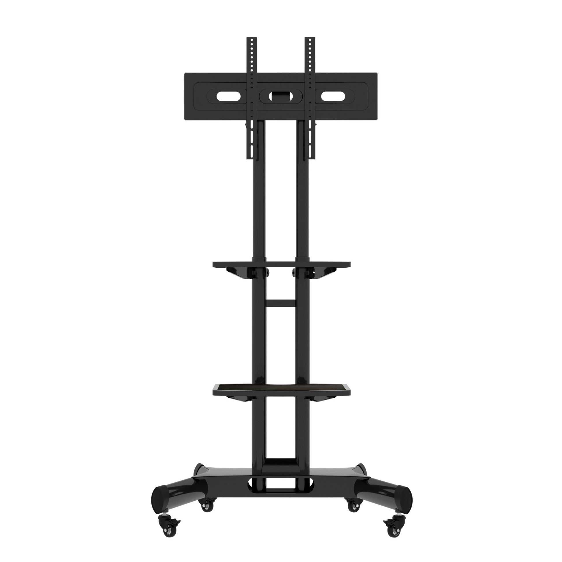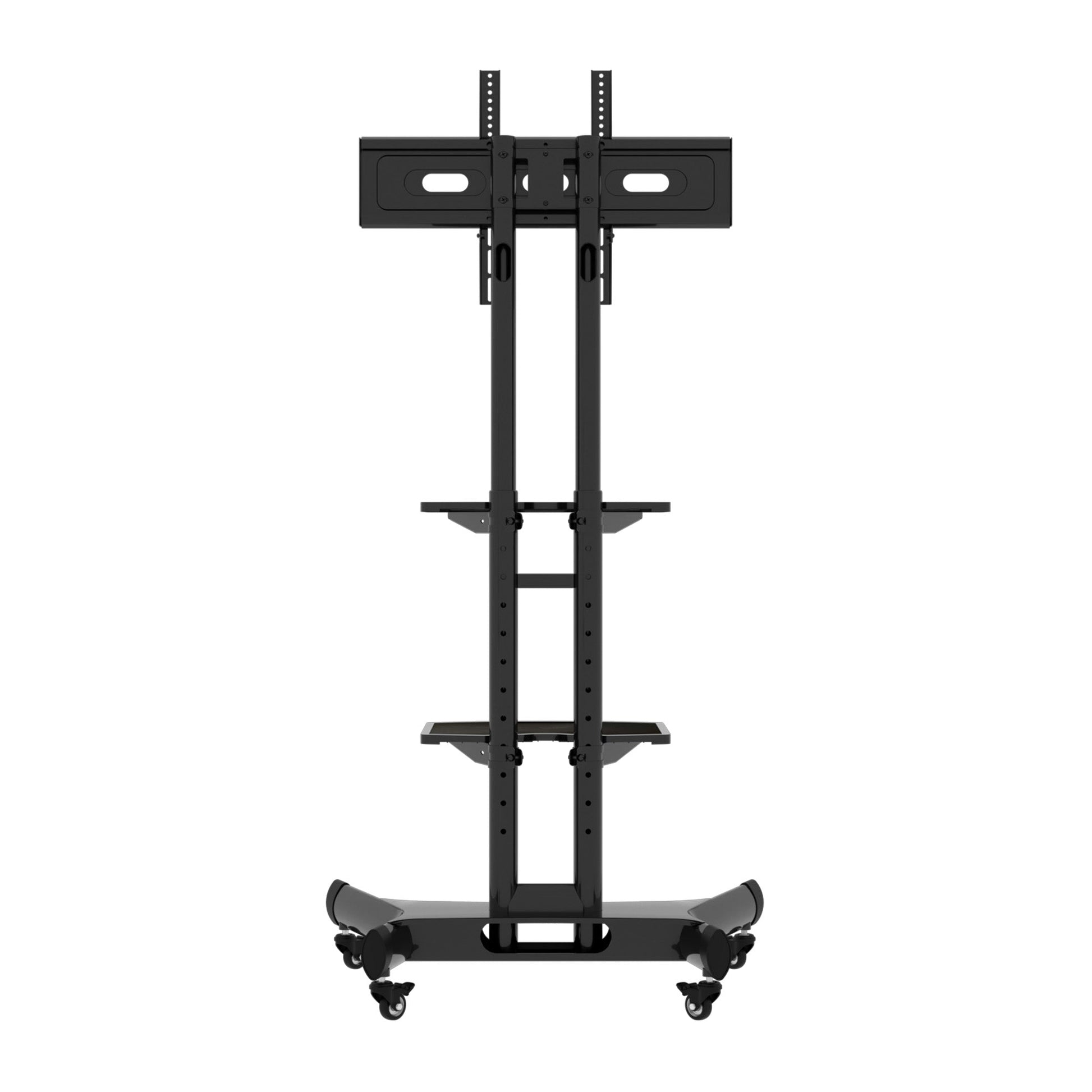 This rolling TV stand of the wide base and sturdy dual columns help to ensure stability and durability for long-lasting performance.