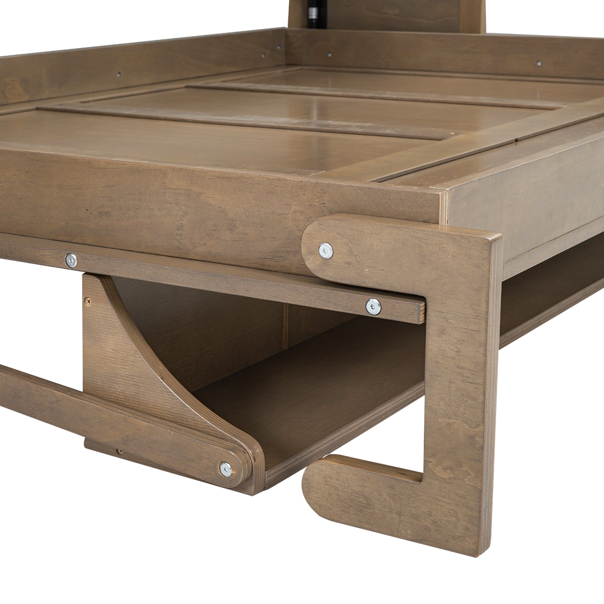 Full Size Murphy Bed with Wardrobe, Drawers and Open Shelves, Antique Grey