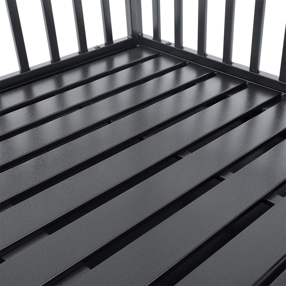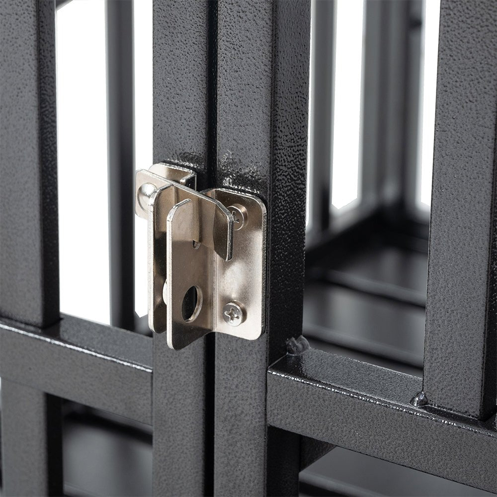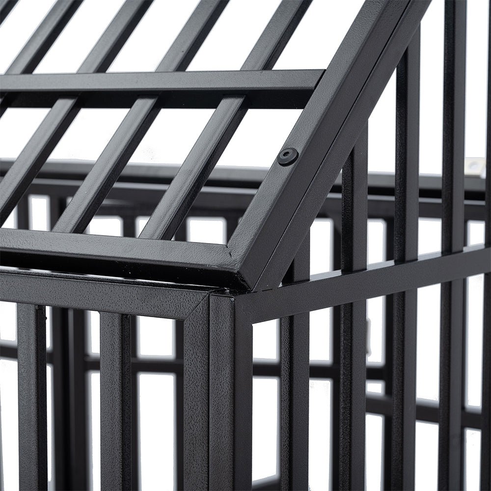 Keep your pup safe and sound with our Heavy Duty Carbon Steel Dog Kennel Cage Crate With Sloped Roof And Wheels! This ultra-sturdy 48-inch crate is designed for larger breeds, constructed with heavy-duty carbon steel for maximum strength and durability. The cage is outfitted with two doors on the front and the roof, both locked securely into place by two patent latches – so you can rest easy knowing your pet is safely secured inside.