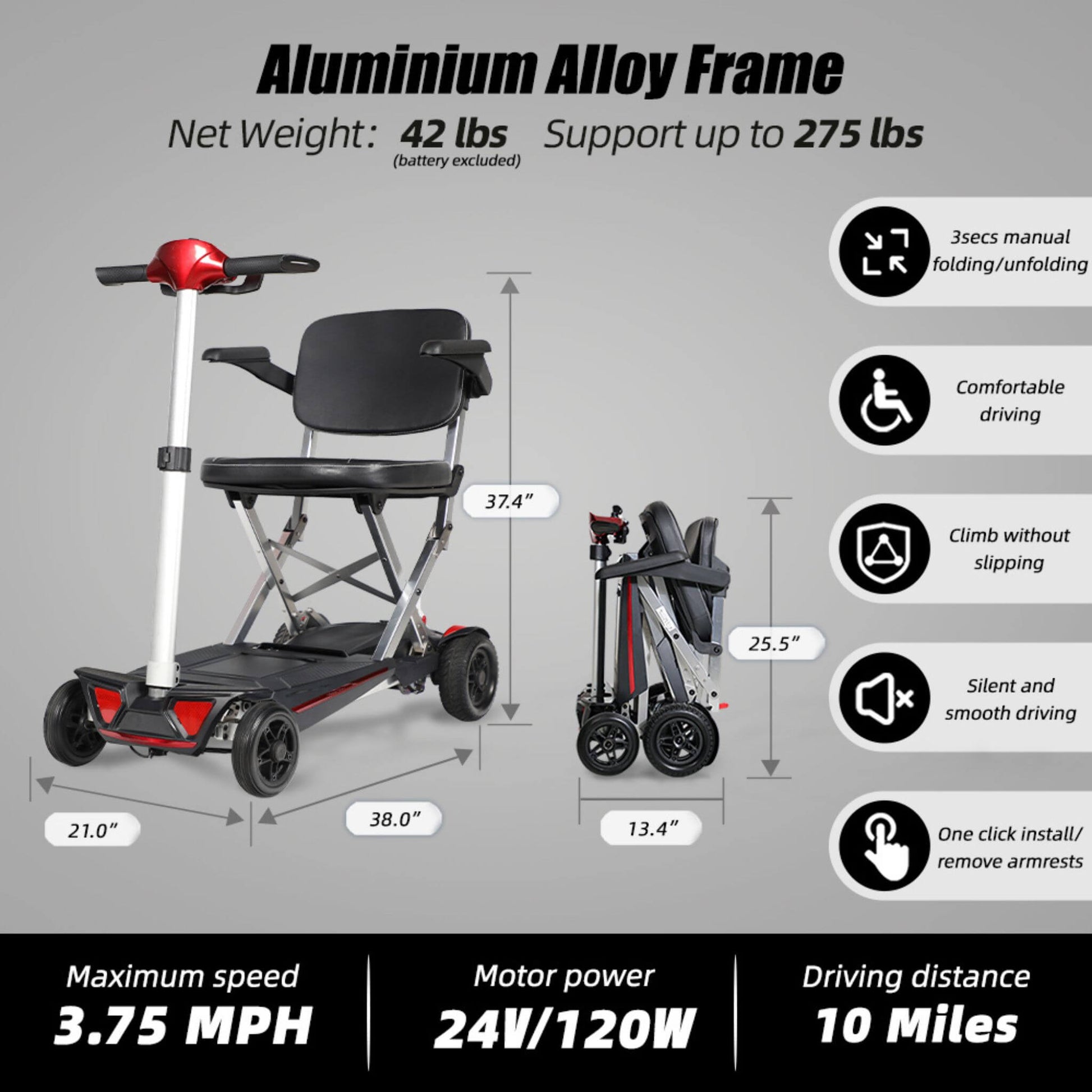 Experience freedom, mobility, and style like never before with the Lightweight Powered Folding Mobility Scooter for Adults and Seniors. Elegantly designed, this scooter combines sleek aesthetics with modern functionality, offering a blend of convenience and sophistication.