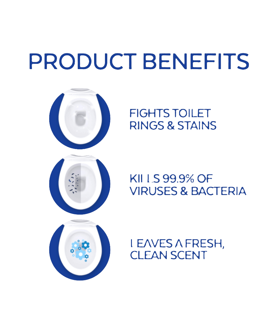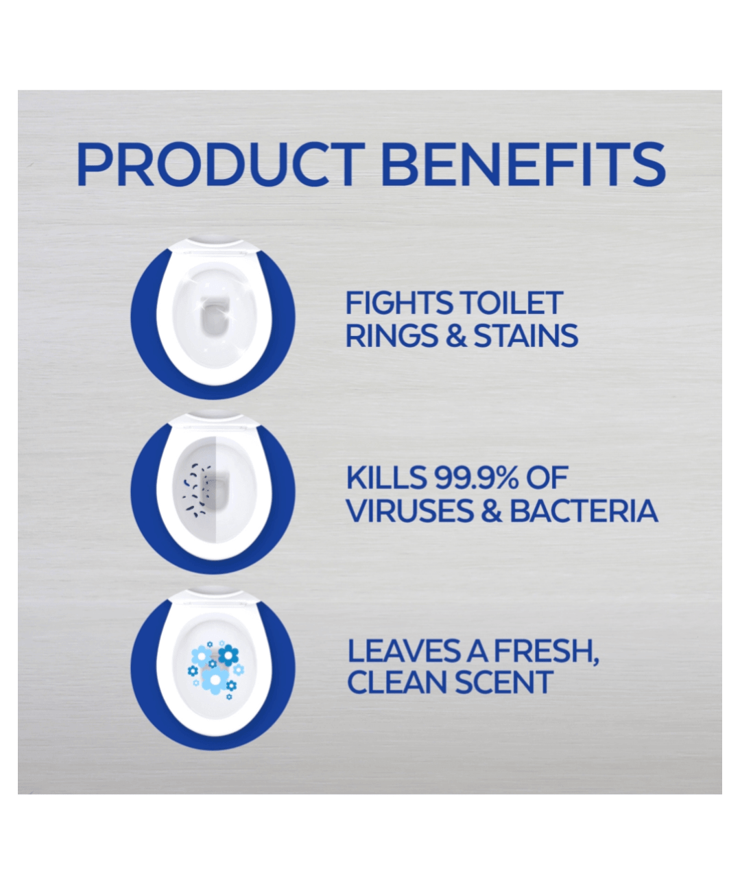 This Advanced Gel Toilet Bowl Cleaner is designed to deliver a powerful clean while disinfecting your toilet. Its thick, clinging formula coats the bowl and targets tough stains, grime, and hidden bacteria. With every use, it kills 99.9% of viruses and bacteria, leaving your toilet thoroughly sanitized and fresh-smelling.