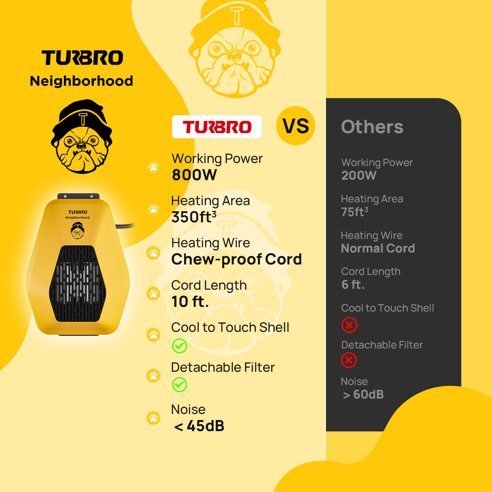 Winters can be very harsh, but some dogs love to stay outside and sleep in outside dog houses. TURBRO brings your pets a warm and comfortable house. With TURBRO dog house heater, you can keep your dog house warm throughout the cold winter night and let your dog have a warm, comfortable place to sleep.