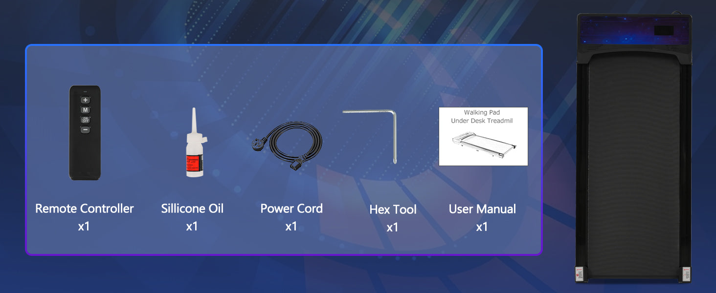 0.6-4MPH -- The walking treadmill with a powerful 2.5 HP motor provides a large carrying capacity of up to 300 pounds.This under desk treadmill provides a speed of 0.6 - 4MPH, which is adequate for most trainees. The right home treadmill can help you integrate fitness into your daily life, and enjoy exercise in the comfort of your home regardless of the weather. NO INSTALLATION -- No need to install, just take this walking pad out and use it. The dimension of the electric treadmill is 44.88"*19.3"*3.93". With transport wheels, you can easily move and store it under a sofa, bed, or behind a door, which greatly frees up some floor space. FITNESS TRACKING DISPLAY -- Our portable Treadmill is designed with a LED display to show speed, distance, time, and calories burned, allowing you to visualize your exercise and maintain motivation. You can control the speed or stop the treadmill by pressing the remote control. PROTECT YOUR KNEES -- 5 layer anti-slip belt of this desk treadmill is designed to absorb the force of your step, to protect your joints and ligaments from damage. NO NEED TO PAIR REMOTE CONTROL REMOTE -- The remote control comes with two AAA batteries. The remote control does not need to be paired. Just install the batteries and you can use it.