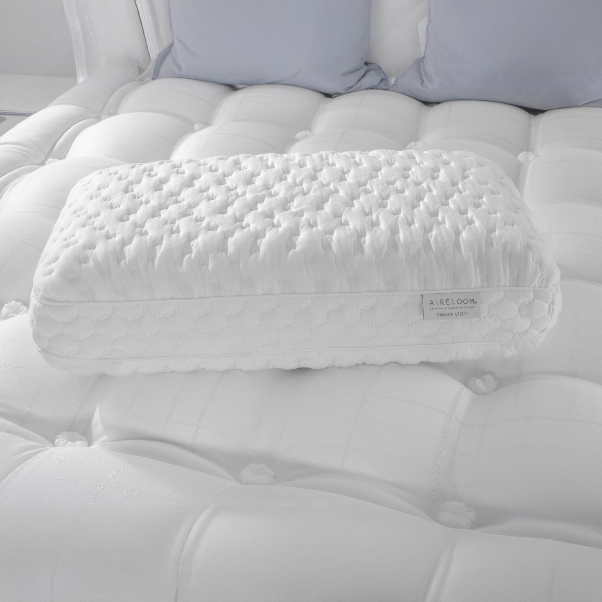 Conforming and adaptive, the Aireloom Nimbus pillow has a truly luxe feel. The pillow core is ventilated visco memory foam that promotes air flow, while the outer lining is a blend of temperature-regulating Tencel material. The profile of this pillow is slightly higher than a standard pillow, but the memory foam conforms to all sleeping positions.