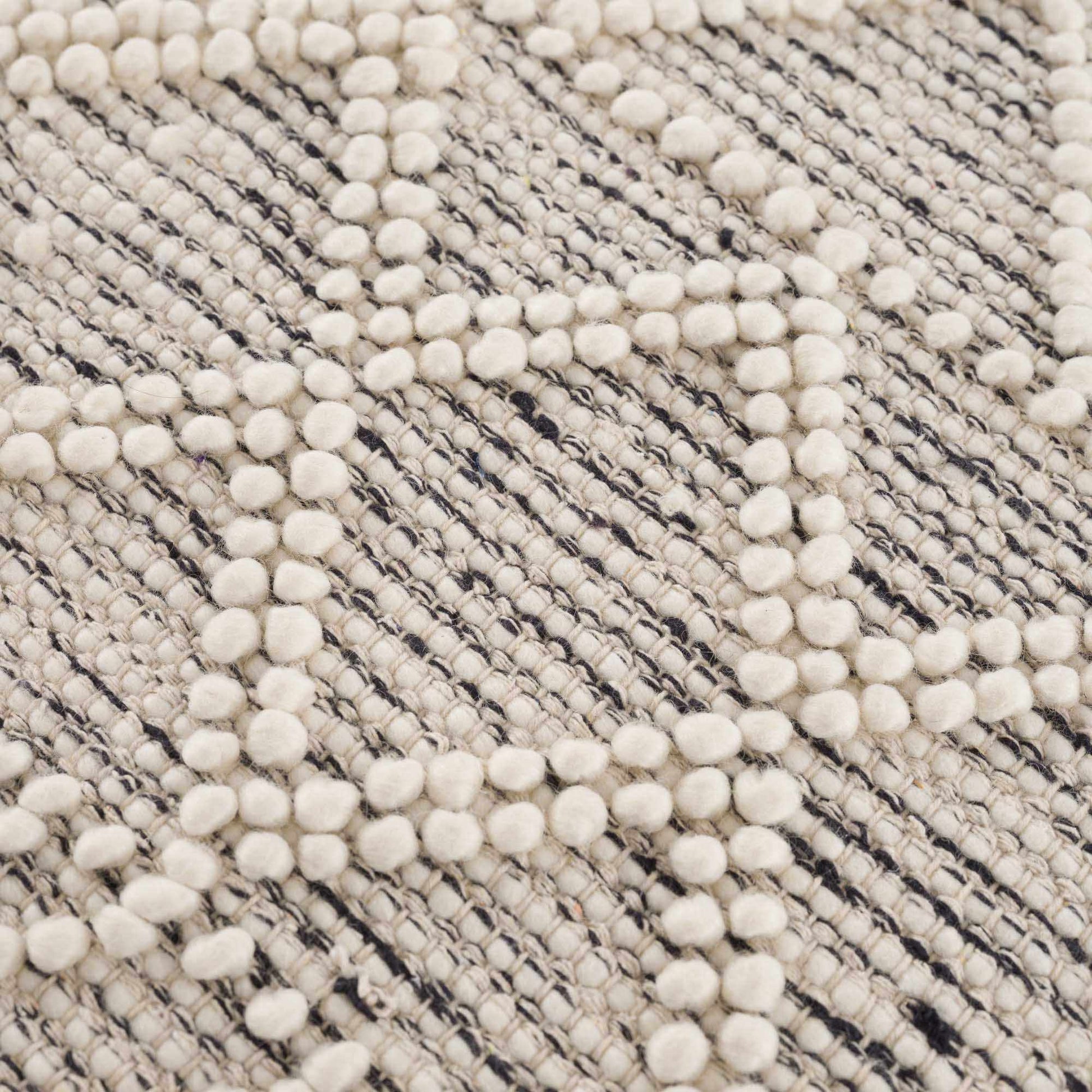 About: This majestic piece of decor is crafted from %40 wool, perfect for creating a cozy and inviting vibe. The classic farmhouse style ivory design with sophisticated black background and geometric patterns sets the tone for any room. And the tassels on each corner creates an extra touch of class. |