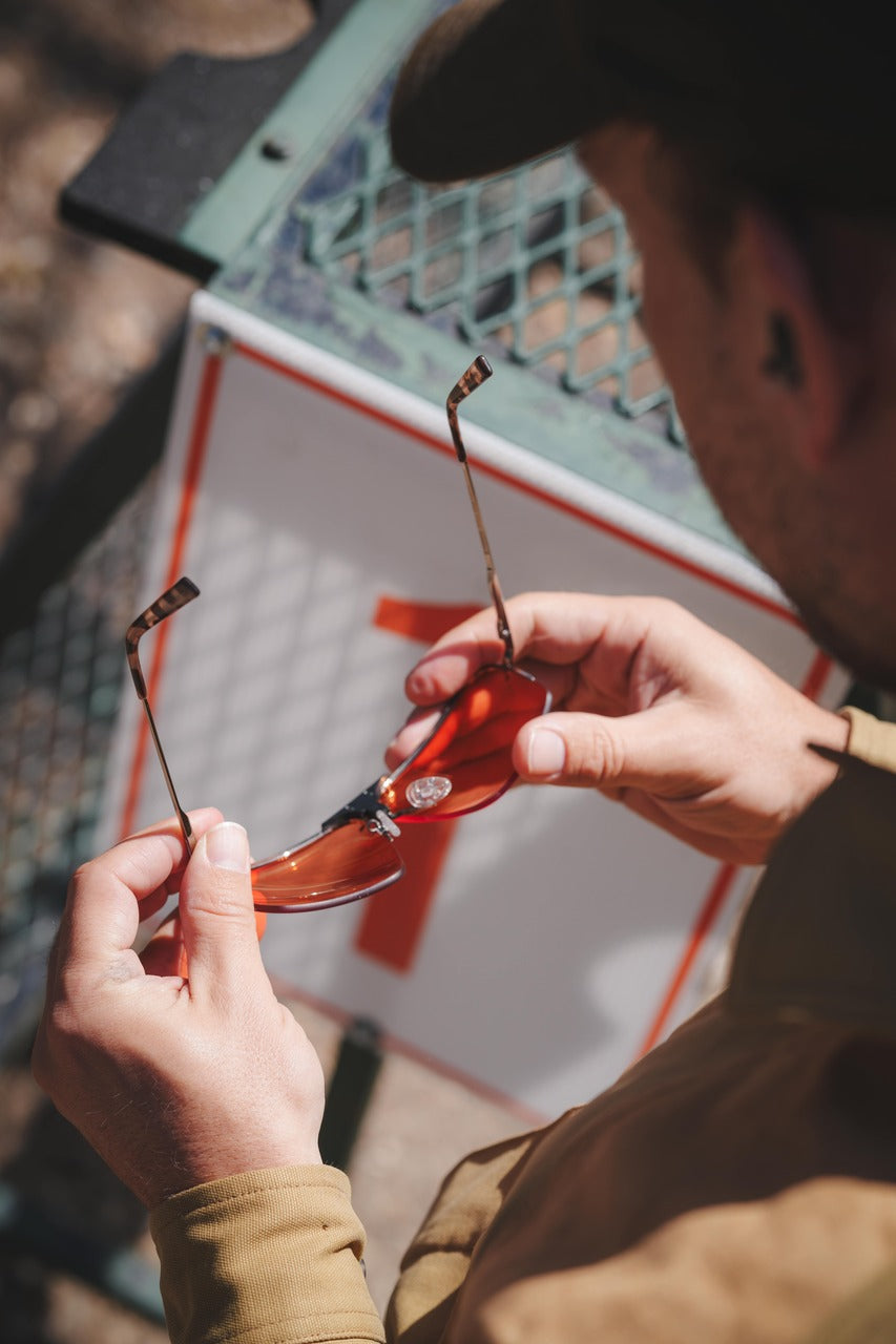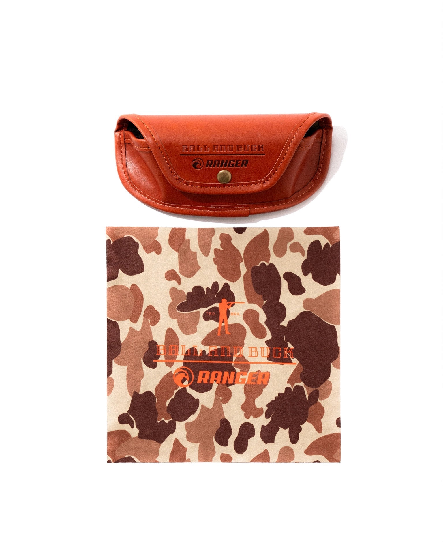 The Ball and Buck x Ranger eyewear capsule comes with the iconic Edge in gunmetal, a Whiskey Tortoise Windsor rim, Whiskey Tortoise skull temples, and the top-selling HD Medium lens. Each set comes packaged in a co-branded box, accompanied by a cognac camo case and a camo cleaning cloth.