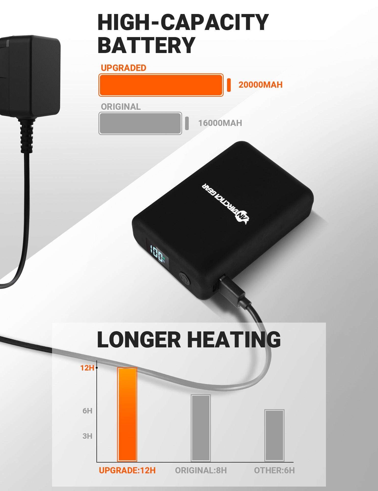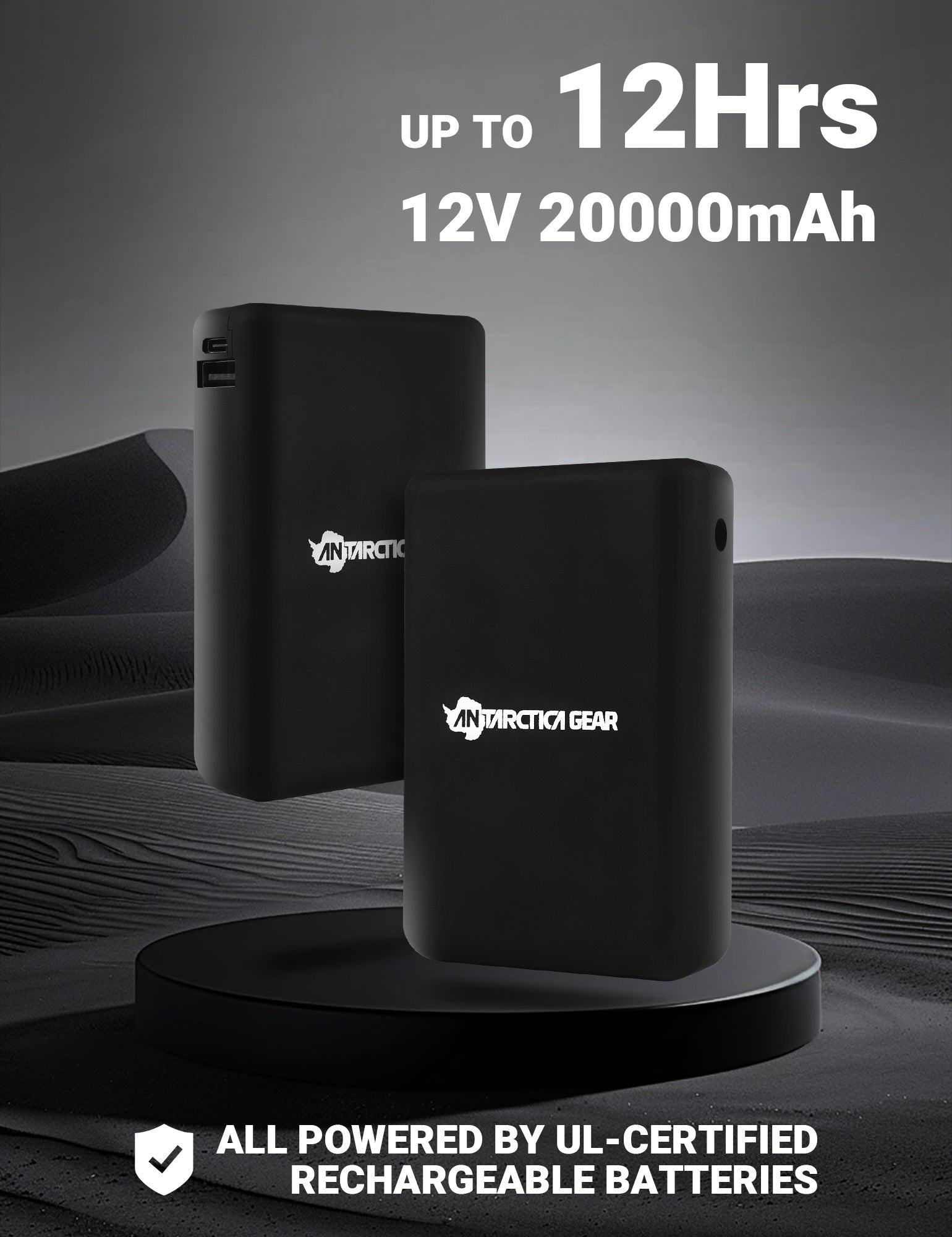 - Professional Grade Power: Designed for versatility, this portable bank is perfect for ANTARCTICA GEAR heated jackets and compatible with smartphones, tablets, and other smart devices. With a massive 20,000mAh capacity and a powerful 12V output, you’ll never run out of juice when you need it most.