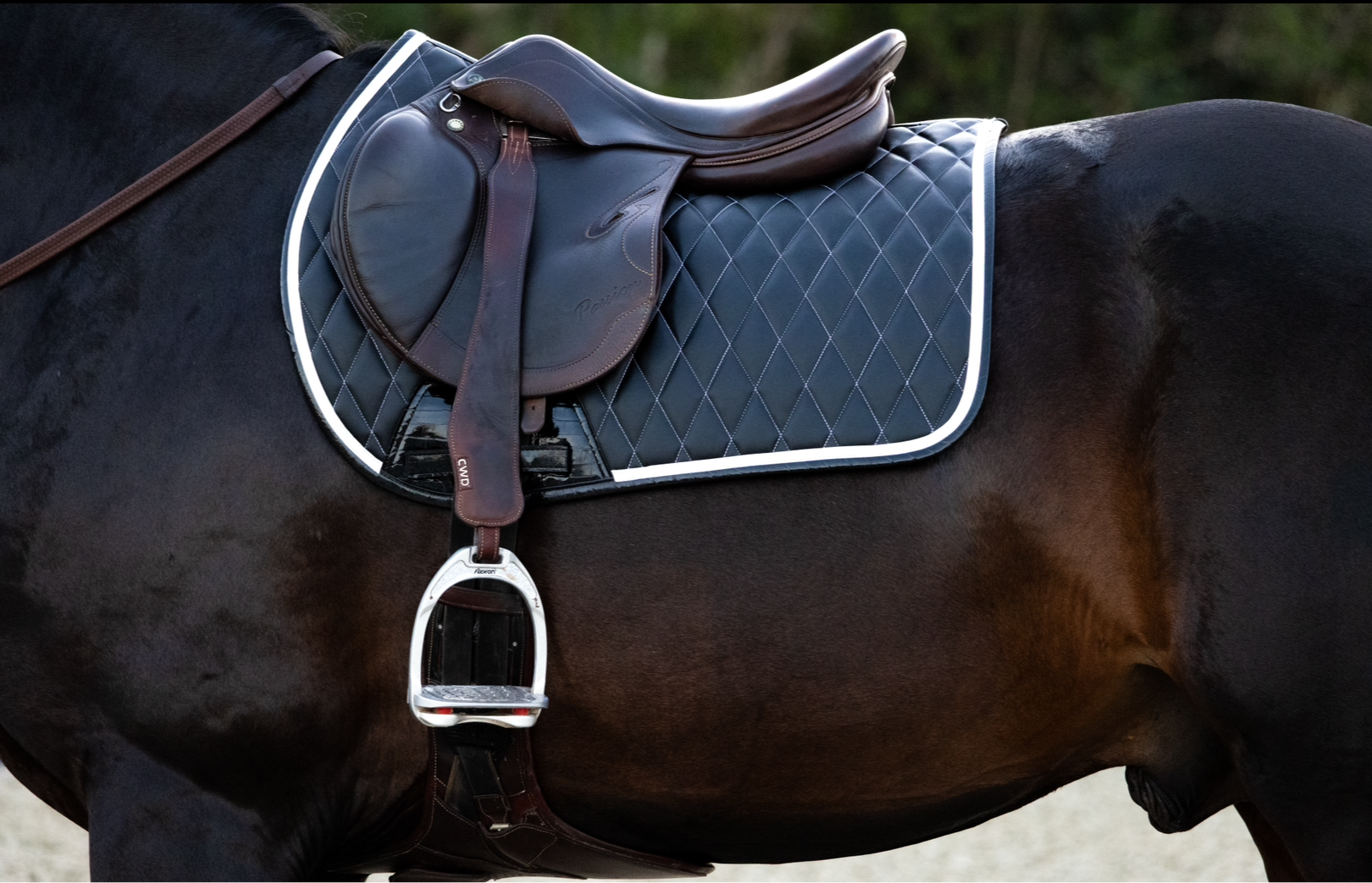 Designed to turn heads both in and out of the arena, our saddle pads combine refined detailing with a polished, modern silhouette. The result is a chic, couture-inspired look that elevates every ride.