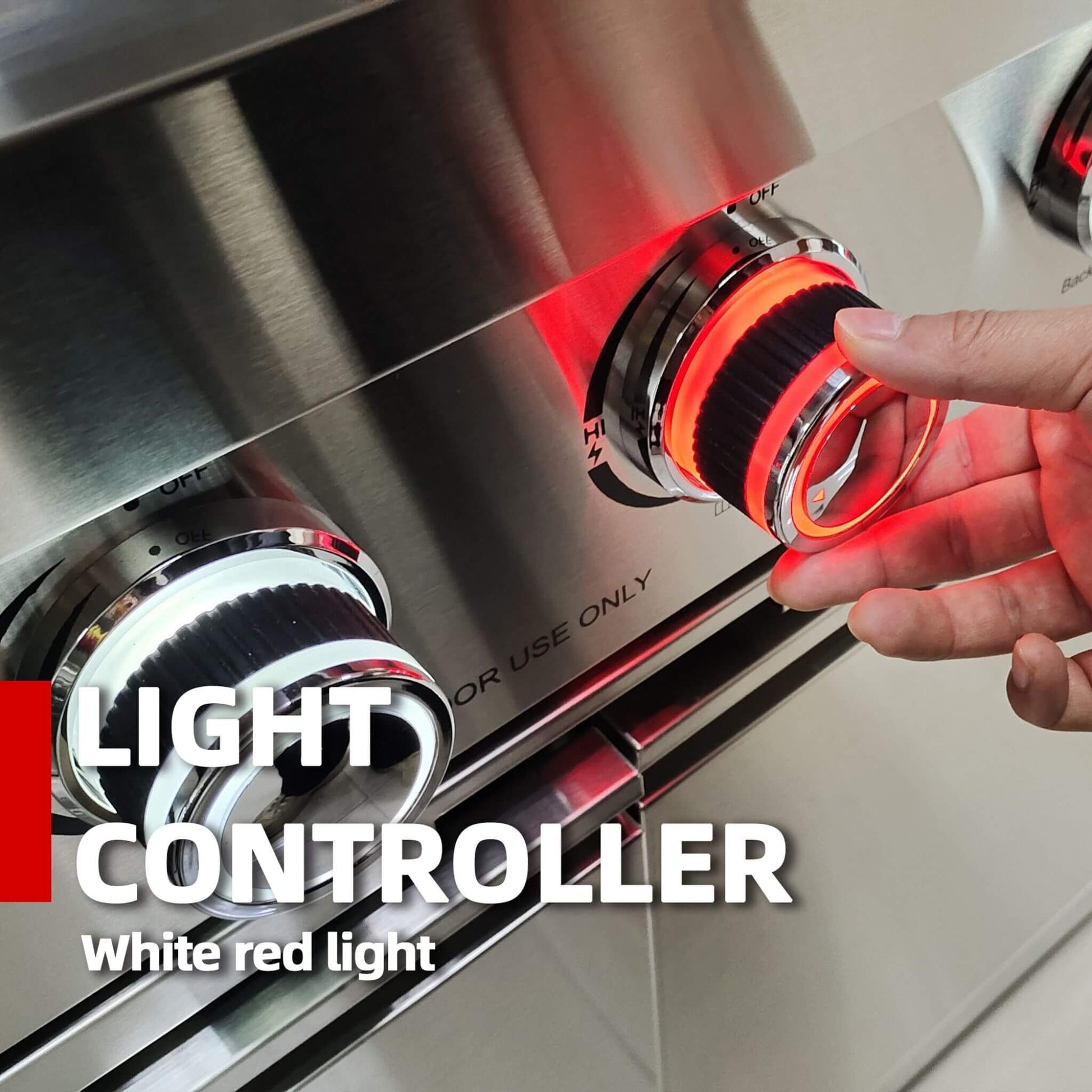 - LED control knob lights switch between red and white, setting the mood and helping you monitor burner status easily.