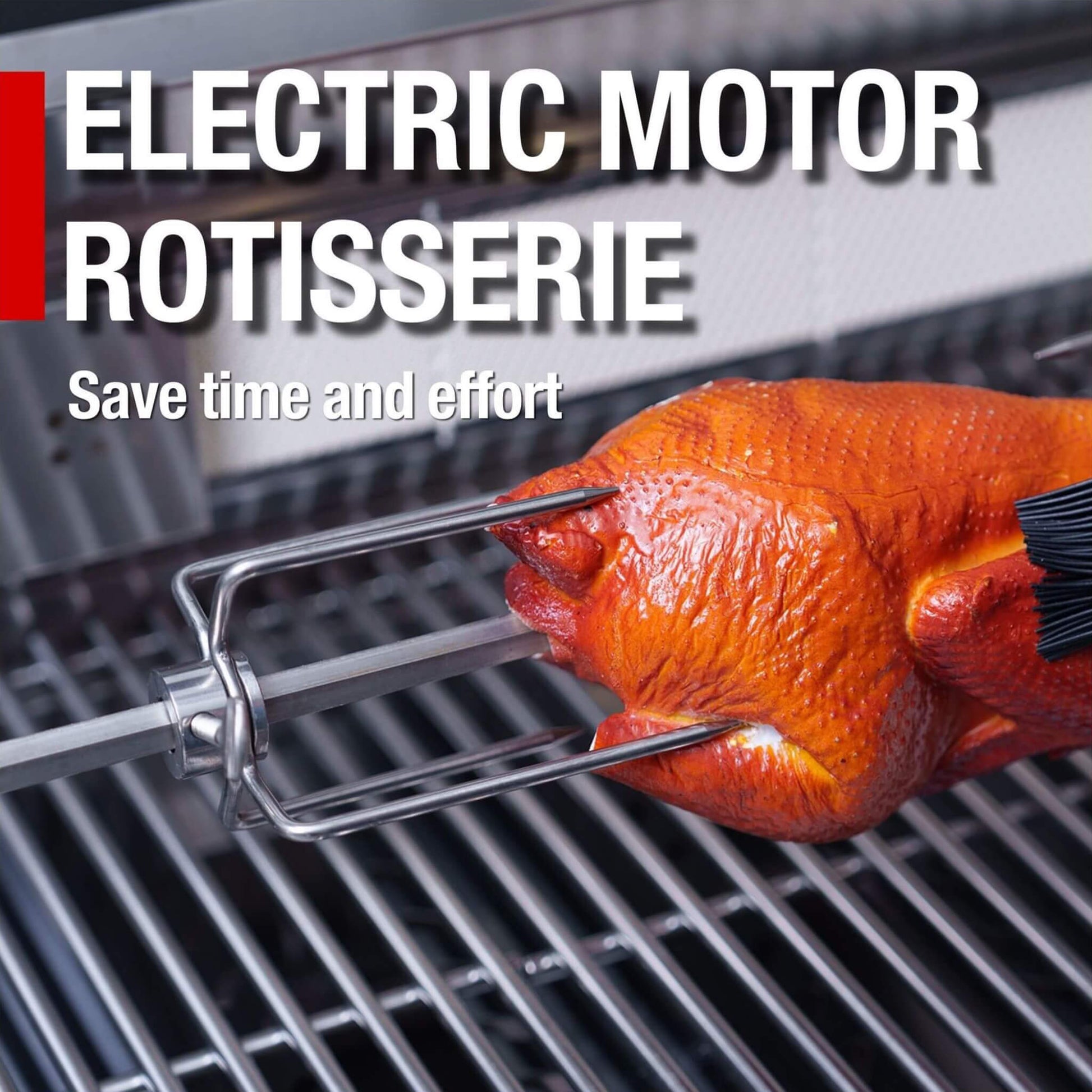 - With 6 burners and a rotisserie, enjoy faster, versatile cooking for large gatherings or family dinners.