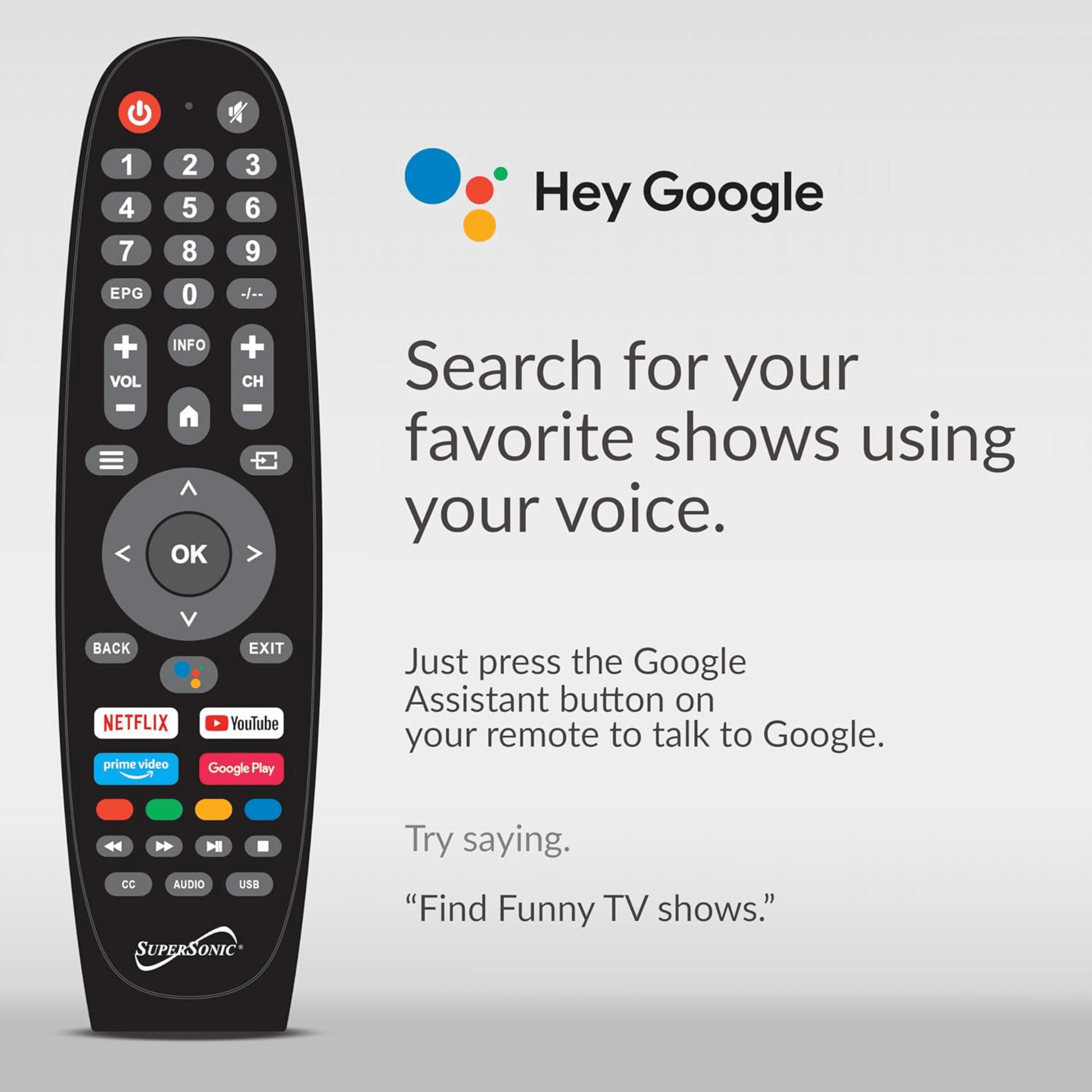 Supersonic 24-inch DLED Smart HDTV with Google Assistant ATSC and NTSC System ACDC Compatible
