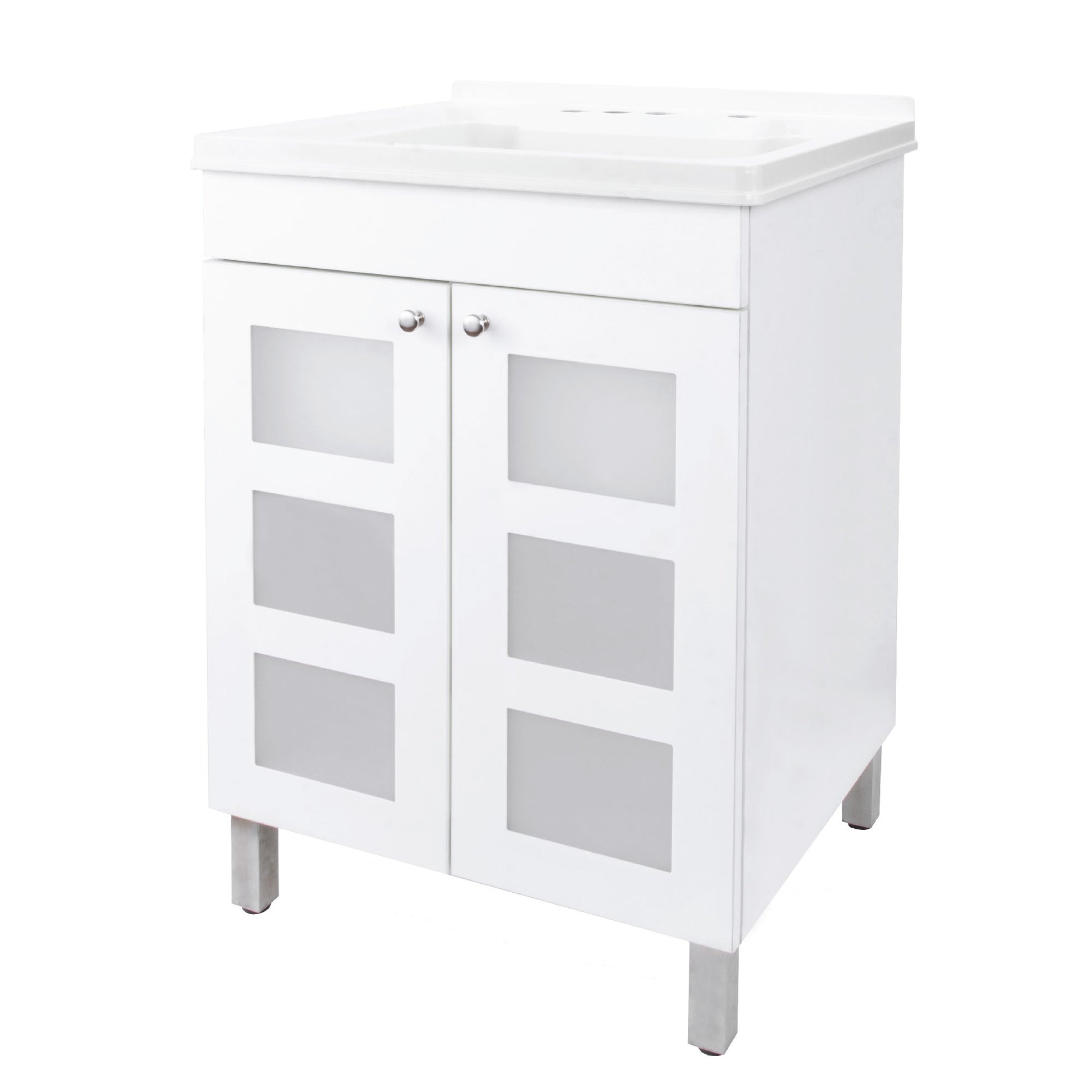 Tehila White Vanity Cabinet and White Utility Sink, No Supply Lines, No Strainer Basket