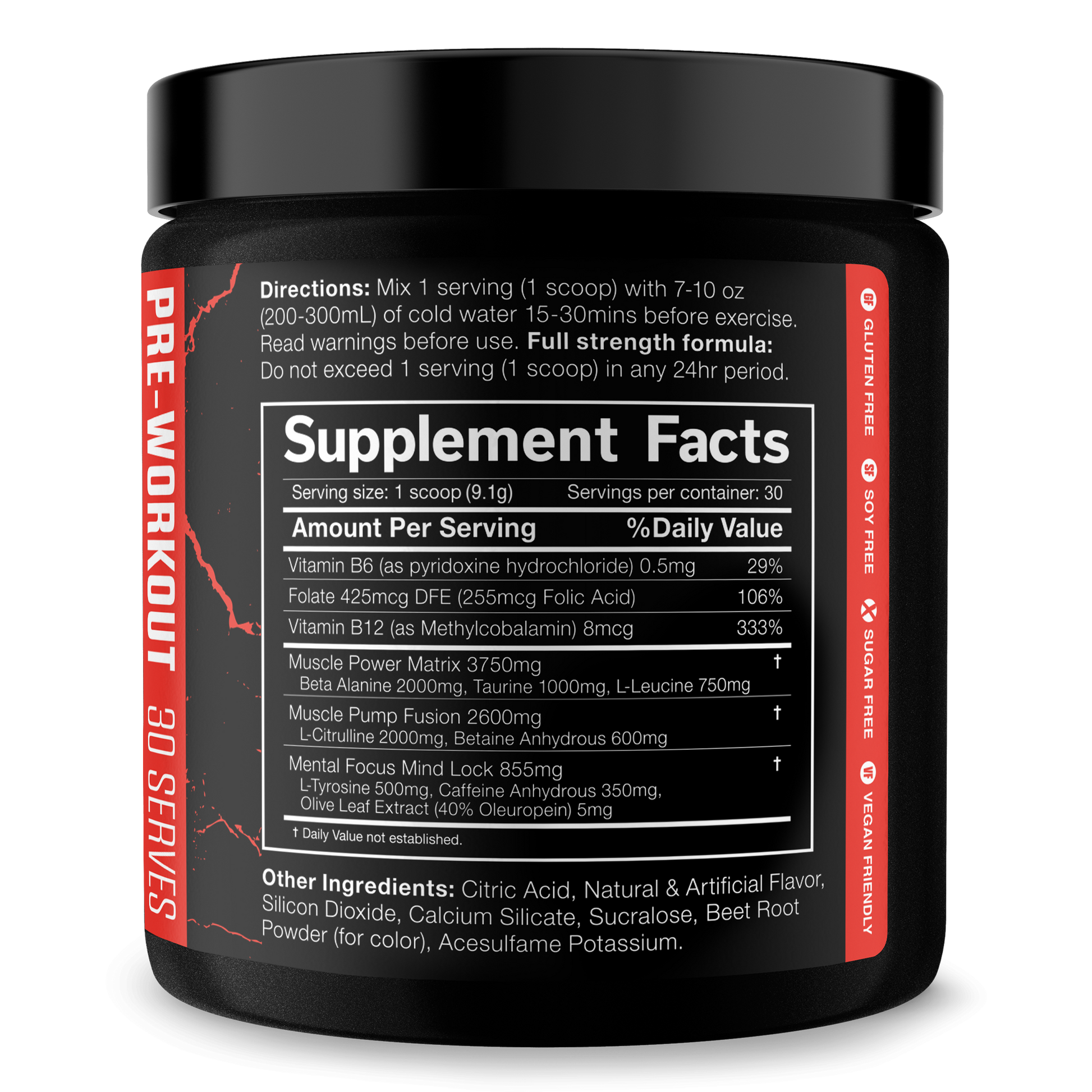 The Shadow! is a full powered pre-workout for hardcore users only…those of us who were born to disrupt the status quo, who hit their PB and then go at it again, who live a life of no excuses. Whatever your goals, The Shadow! is going to help you smash them sooner.* With 350mg of caffeine per serving, and 2000mg of Beta Alanine, The Shadow! delivers unsurpassed energy, hypnotic intensity and hard hitting strength like no other pre-workout on the market.*