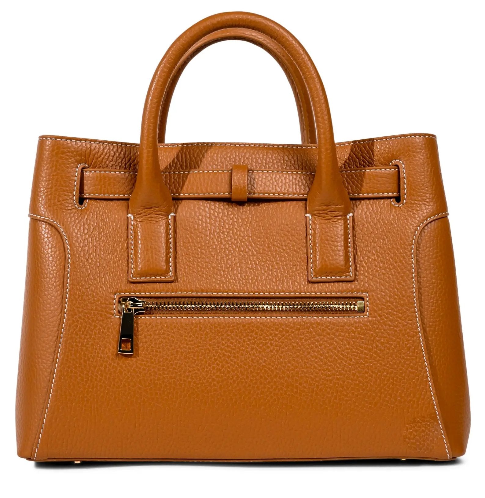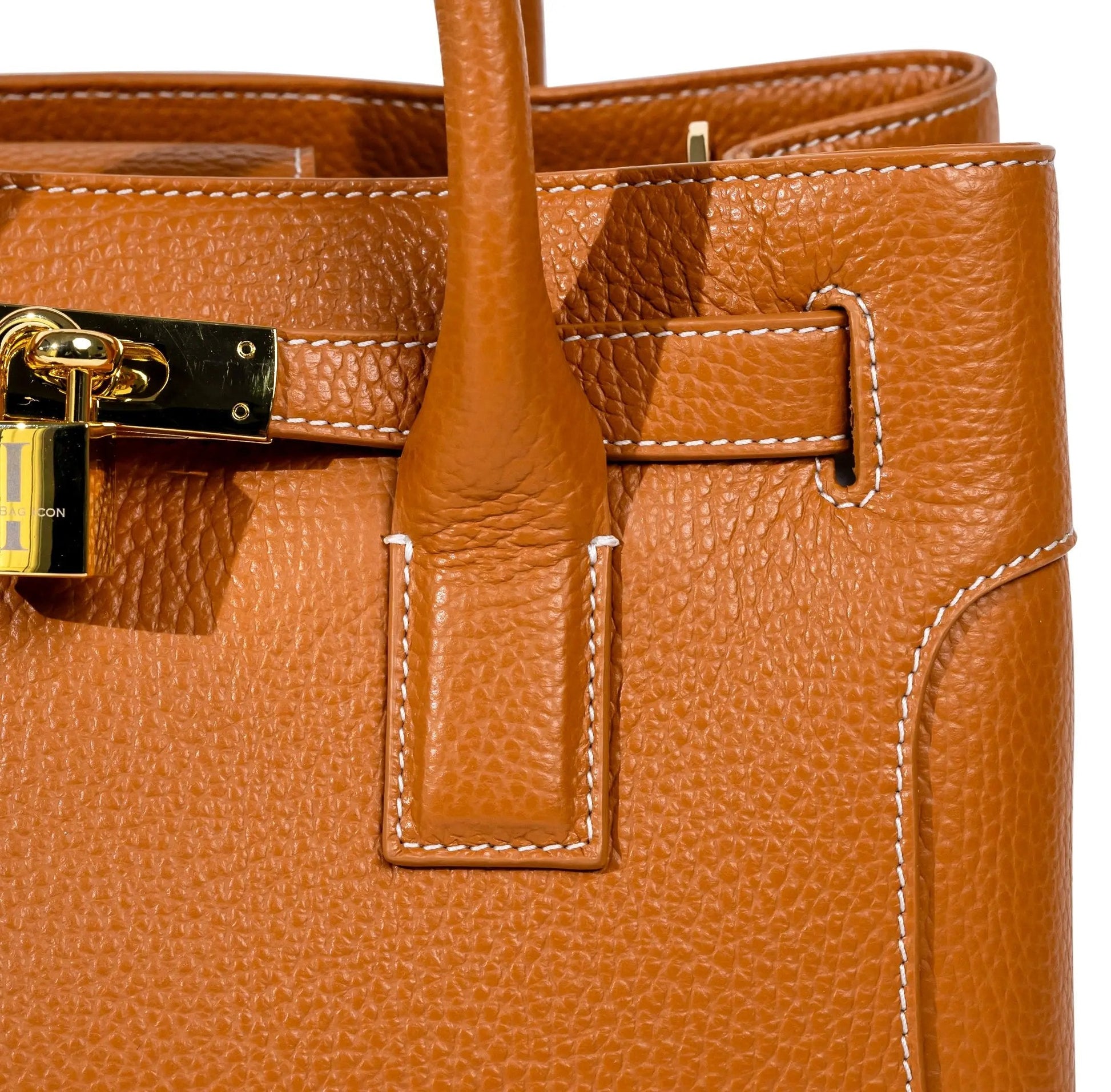 This very special handbag was designed to honor the owner's late mother, SHARON CLAUDIA. Handmade in Italy, this classic tote bag exudes sophistication and features soft yet durable full grain pebbled leather and bold gold hardware.