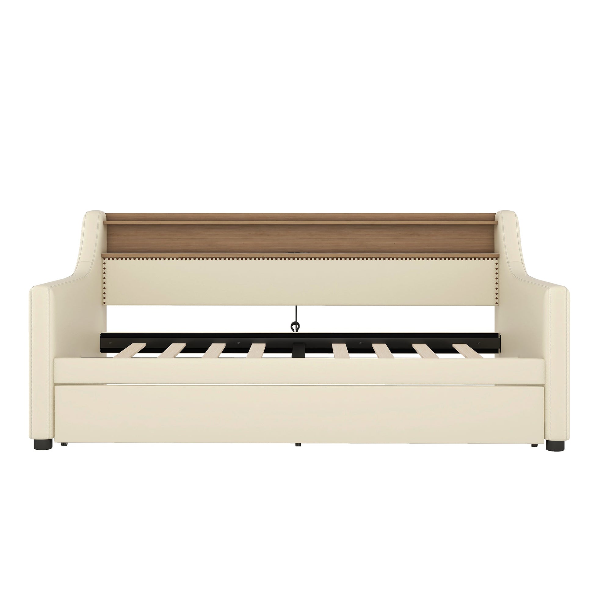 Twin Size Daybed with Trundle, Upholstered Daybed with Charging Station