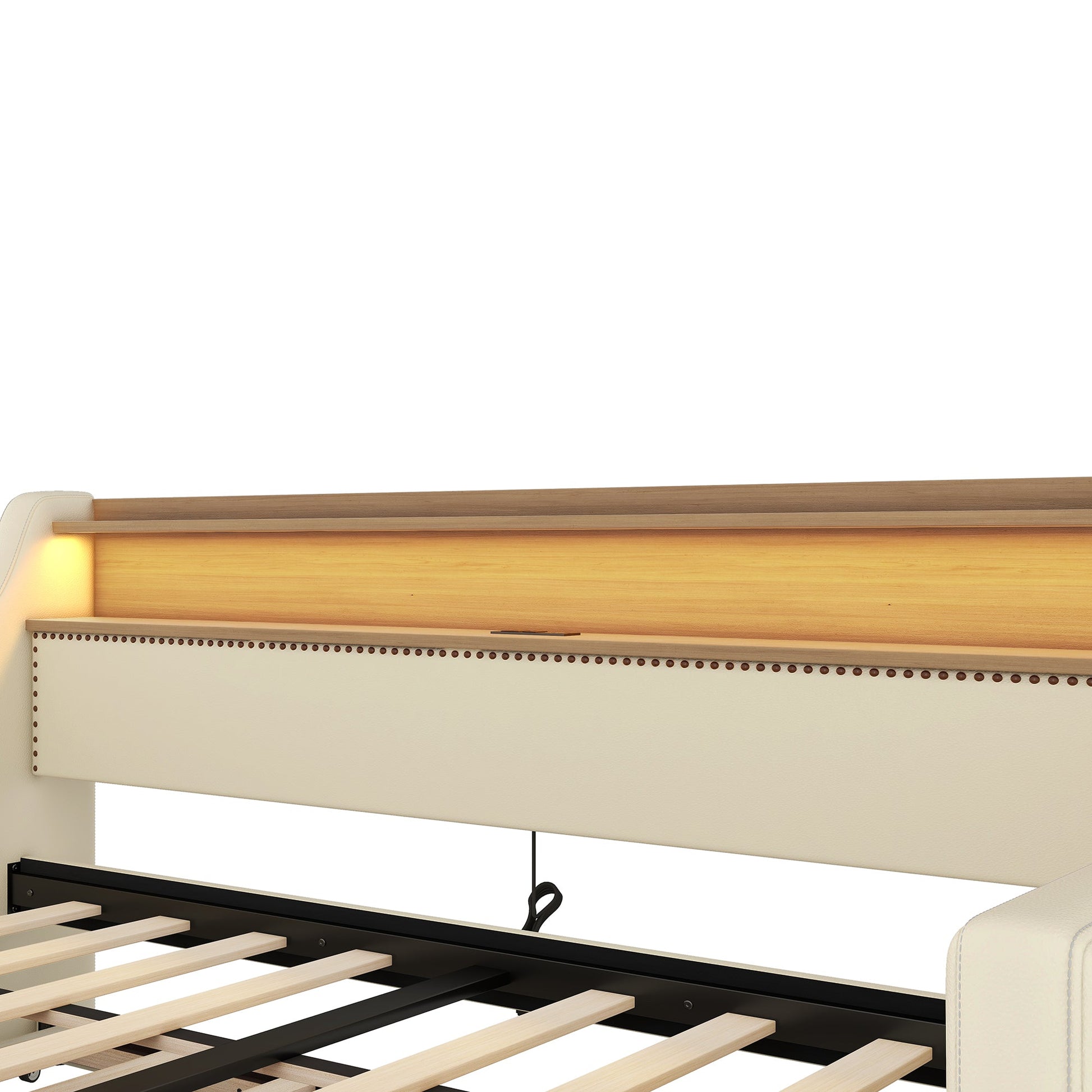 Product Name:Twin Size Daybed with Trundle, Upholstered Daybed with Charging Station and LED Lights, Beige
